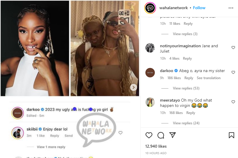 - Darkoo shared a photo of herself being cozy with Ayra Starr and gave the impression that they were having some intimate relations.