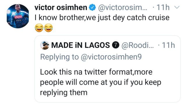 However, Victor responded saying, “Advice well received bro thanks, but the problem is, I no dey hear word and I get coconut head… Tomorrow more memes to come”.