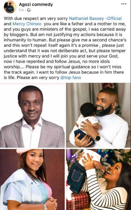 A Nigerian guy who urged Blessed to do a DNA test reverses his decision, comes down in tears, and begs forgiveness from Nathaniel Bassey and Mercy Chinwo.
