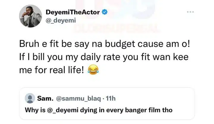 In response, Deyemi hilariously mention that it could be related to the budgeting of the film. He also added that his rates are not for the faint hearted.