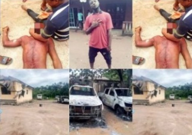 The police station in Umuoke Obowo was, yesterday, set ablaze by the enraged youth of the town, following the alleged killing of one Ikenna Ogbunigwe by a policeman.