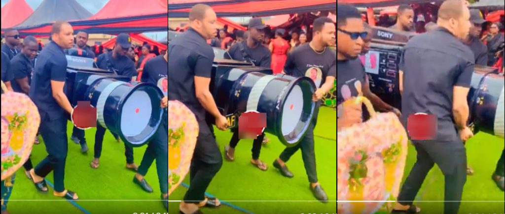 In the footage, pallbearers solemnly carry the custom-made, camera-shaped coffin to the burial site, evoking strong emotions from those in attendance and viewers online.
