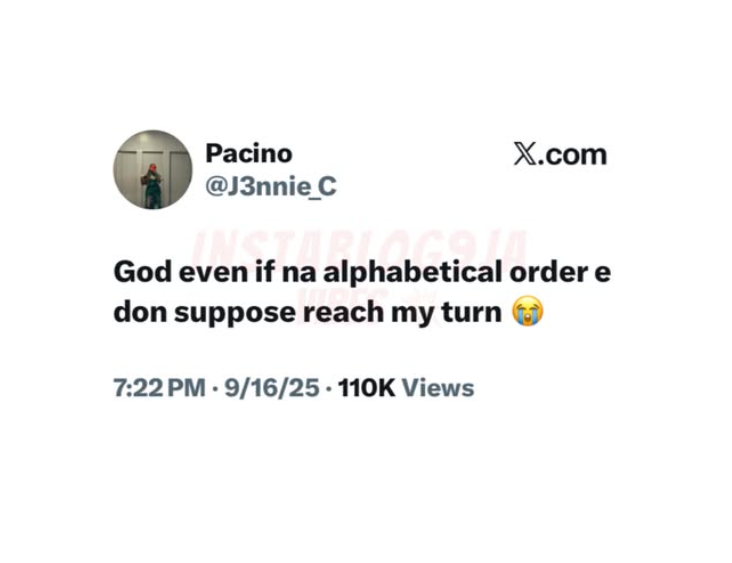 Nigerian Man Cries Out in Frustration: “God, Even If Na Alphabetical Order, E Suppose Don Reach My Turn by Now”