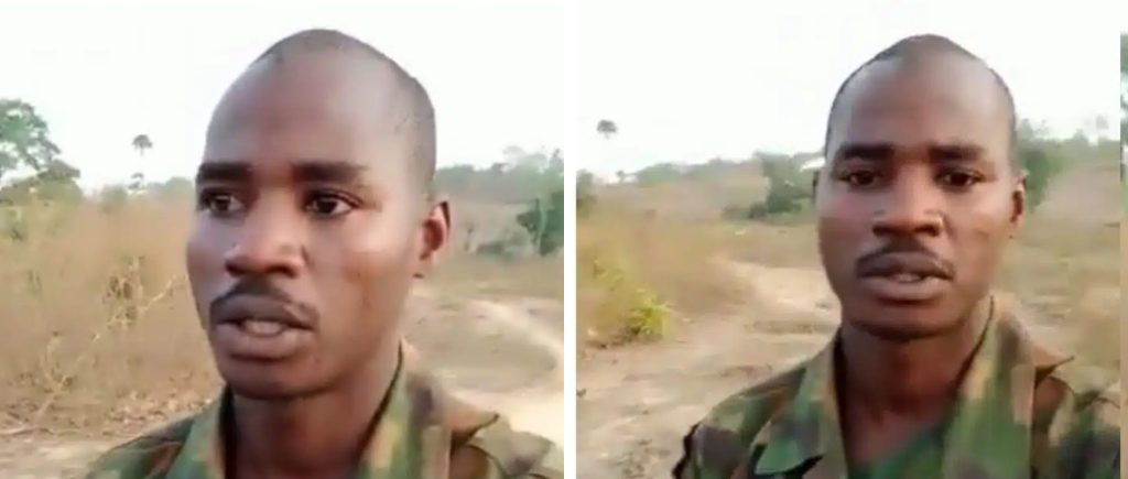 A Nigerian soldier has been seen appealing to God for help and protection after allegedly being left alone in the bush by his fellow troops.