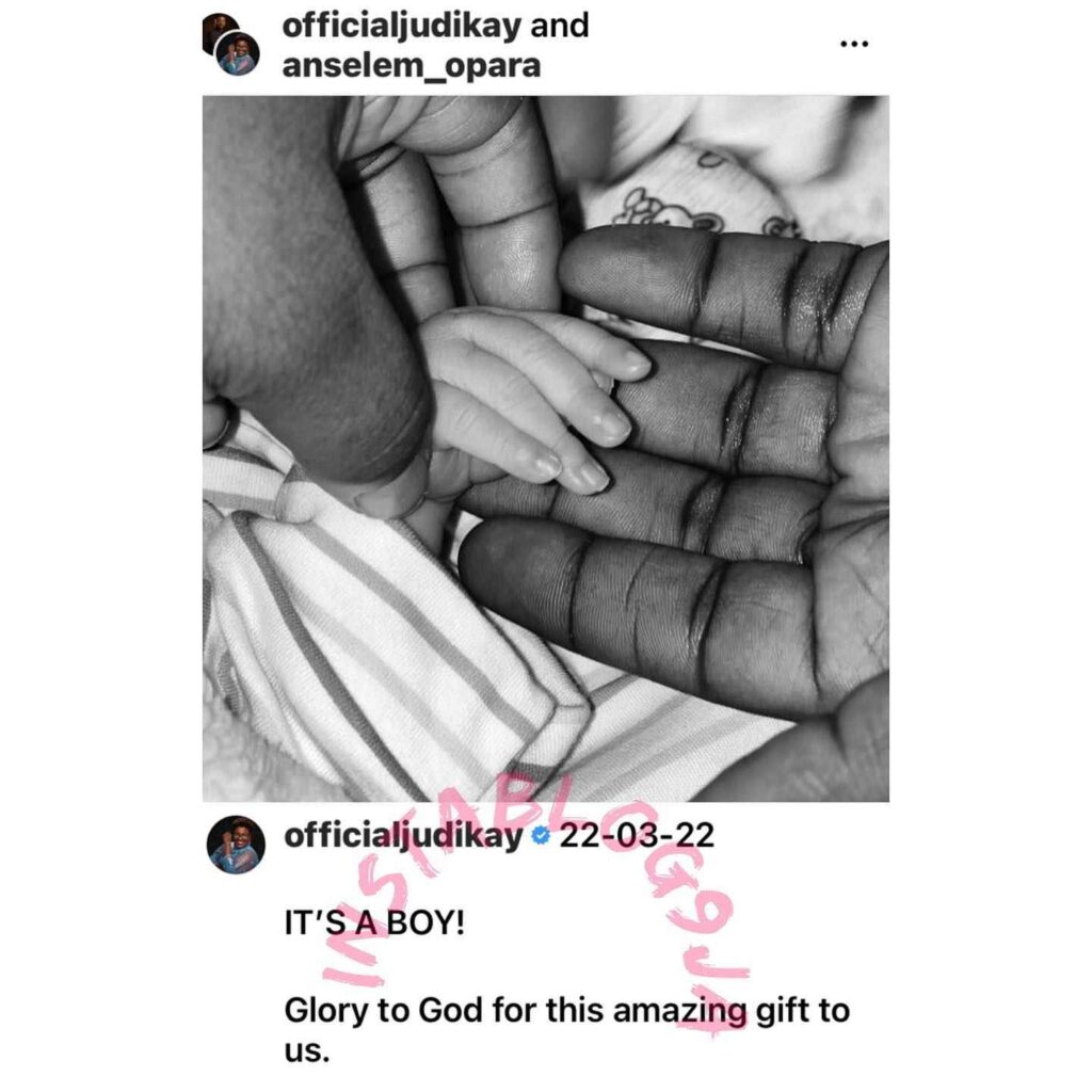Judikay announced on her Instagram page that she delivered a bouncing baby boy on Tuesday, March 22, 2022.