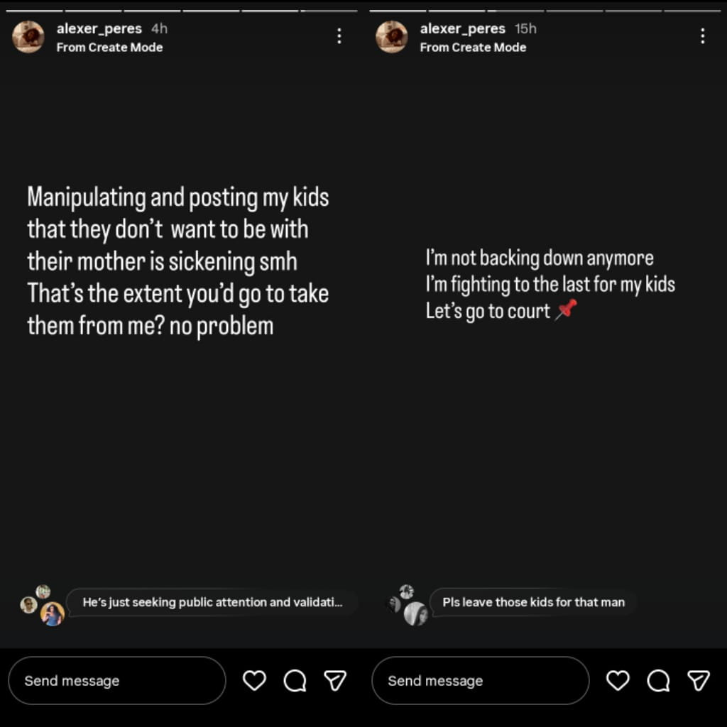 - Alexer Peres, Harrysong’s estranged wife, expressed concerns about their children on Instagram.