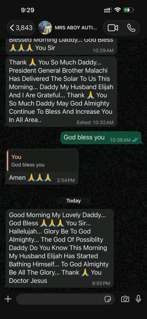 In a recent Facebook post, the cleric shared a WhatsApp conversation from his daughter-in-law, in which she mentioned that Aboy was able to bathe himself without assistance.