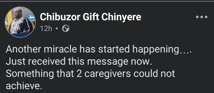 In the post’s caption of the post, the clergyman wrote, “Another miracle has started happening. Just received this message now. Something that 2 caregivers could not achieve”.