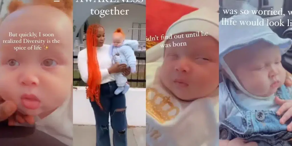 A woman shared a video on social media showcasing her son with type 3 albinism. The video showed her face and the baby’s face, with the caption revealing the condition. The video sparked comments from viewers, highlighting the beauty of the baby’s appearance.