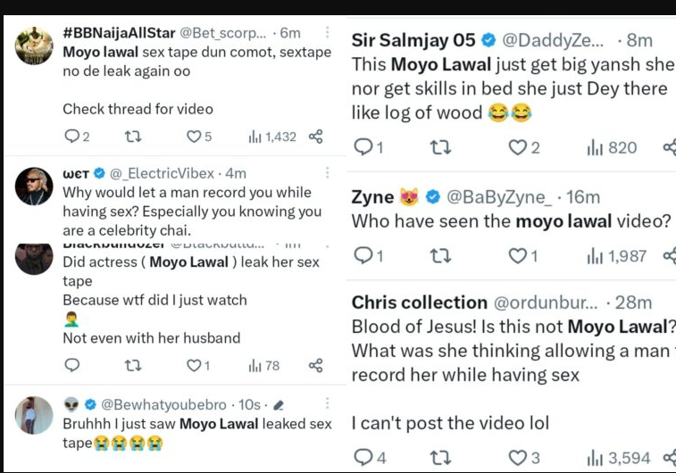 One Black Bulldozer wrote, “Did actress Moyo Lawal leak her s3x tape. Because wtf did I just watch. Not even with her husband”.