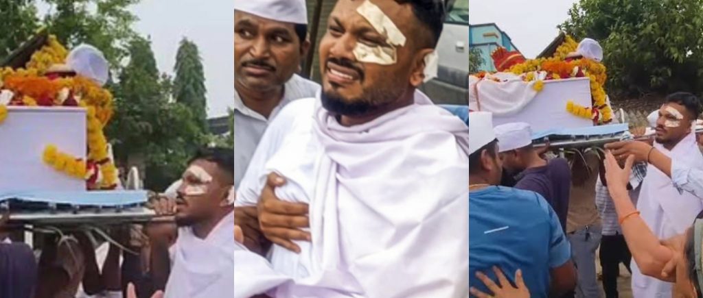 Footage showed Vishwash, limping and covered in plasters, balancing Ajay’s coffin on his shoulder as mourners paraded through the streets.