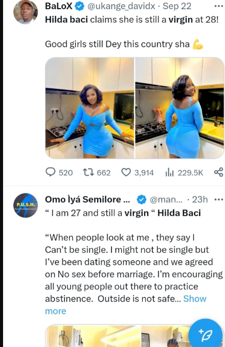 Since last Friday, social media reports have circulated that Baci given an interview explaining her “commitment to remain a virgin, despite being in a five-year relationship.”