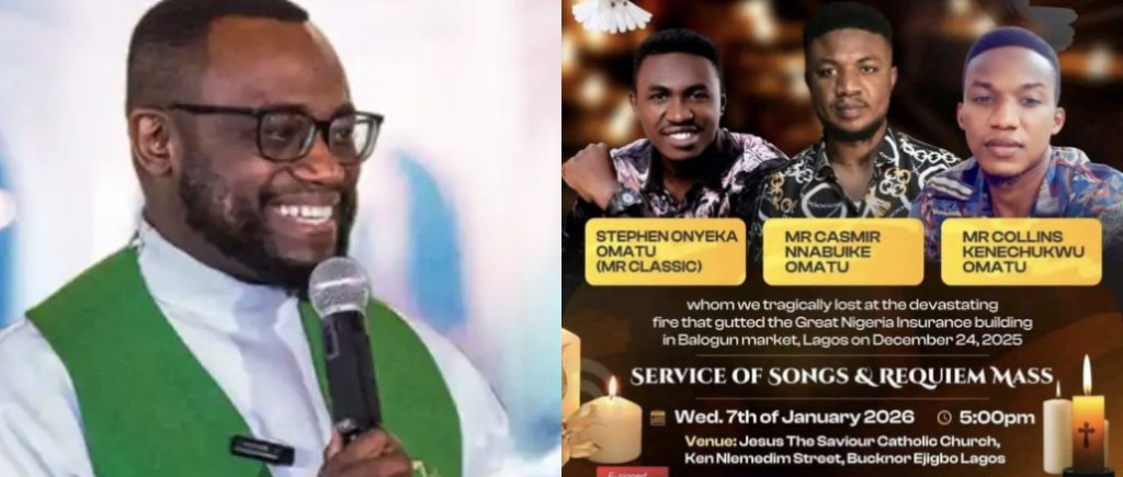 - A Catholic priest has mourned three orphaned brothers who died in the Great Nigeria House Market fire on Christmas Eve 2025.