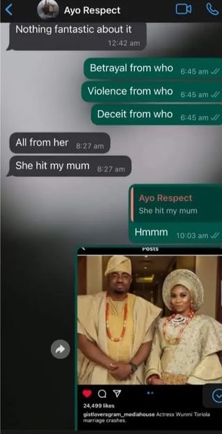 - Describing his marriage as a total regret, he further alleged that Wumi physical assaulted his mother.