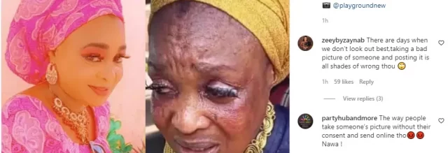 Nike Peller In reacting to the photo claimed the shot was taken while she was mourning her late brother and colleague, Kunle Adetokunbo, popularly known as Dejo Tunfulu.