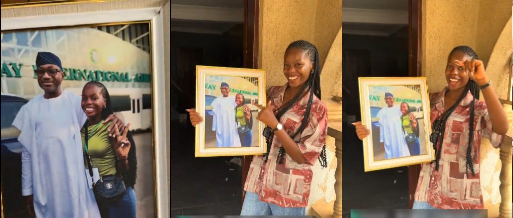 “Of course, I met the most humble billionaire in Nigeria. I asked for a picture and of course I had to have it framed because why not? @Temi Ajibade your dad is such a sweet man,” the caption reads.