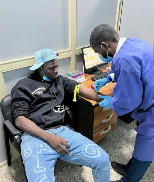 He asked his fans to pray for him as he tweeted a picture of himself getting examined.