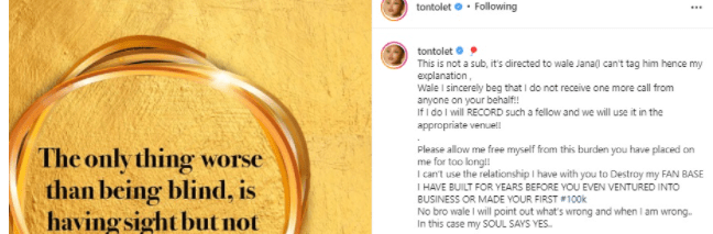 This is not a sub, it’s directed to wale Jana (I can’t tag him hence my explanation, Wale I sincerely beg that I do not receive one more call from anyone on your behalf!!
