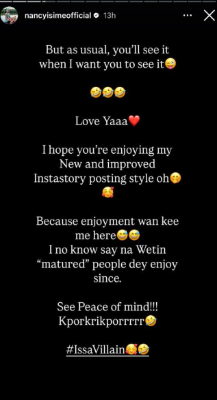 - Nancy Isime shared on Instagram that she is now enjoying the actions of mature people to maintain happiness.