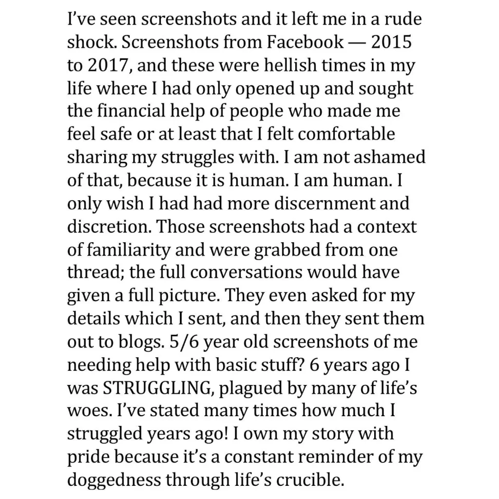 While addressing screenshots of chats showing him asking for money, he stated that they were old chats from his ‘hellish’ days; days when he was struggling and had opened up to people with whom he felt safe.