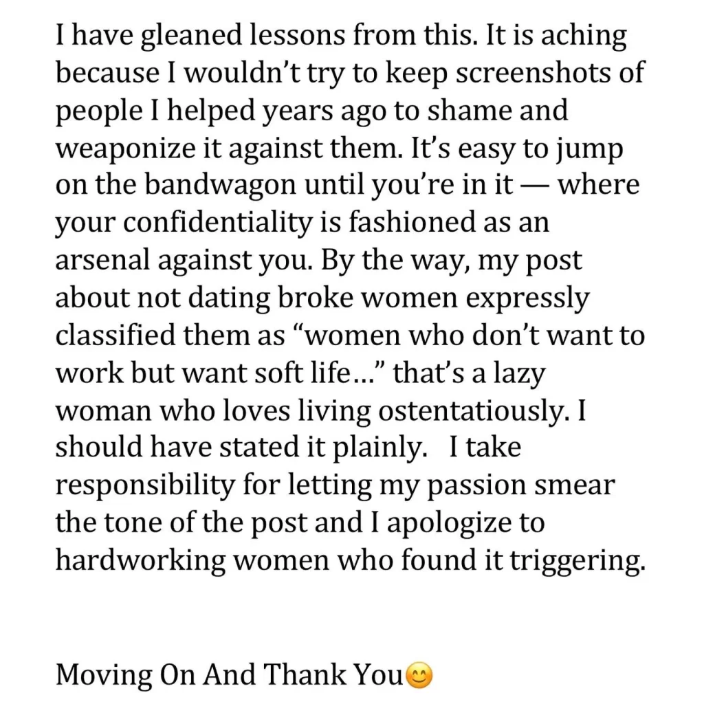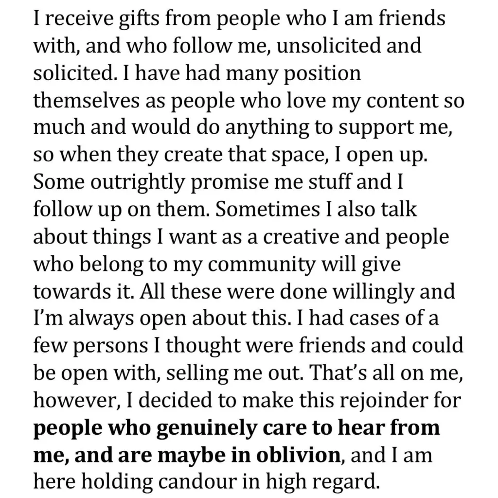 However, Following this advice, a handful of women had shared screenshots of chats where Buchi supposedly asked them for money.