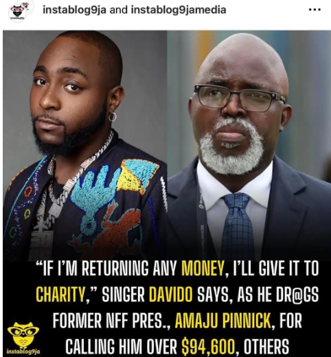 He made this post on his Instagram page in response to reports that Davido failed to appear for a gig in Warri, Delta State, after receiving payment for the said show.