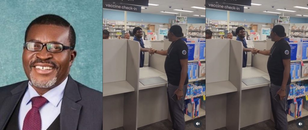 The screen legend, who made headlines earlier in the year for his dramatic birthday celebration, paid a surprise visit to his son’s workplace in Maryland. In the accompanying caption, Kanayo revealed it had been nearly a year since they last saw each other, so he decided to show up unannounced.