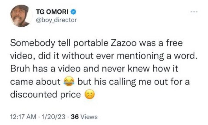 “I shot Zazoo for free, without mentioning a word”- TG Omori hits back at Portable