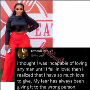 Sharing the good news via Twitter, the lifestyle influencer noted that she thought she was incapable of loving any man until she fell in love and realized that she have so much love to give.