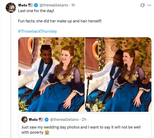 “Beautiful wedding didn’t cost us 500k bro. I wanted to sell my phone to buy ring then, one of my friends here on x told me not to, he gave 50k I used that 50k to buy suit and ring for her! The ring peel after 3 weeks. She still has it now sha even though I have bought better ones. Decoration was done by friend and the hall was free. We invited just few people even though some family members still brought people we didn’t invite. Food was organized by family and some savings I have done. I didn’t spend 300k for the wedding!,” he added.