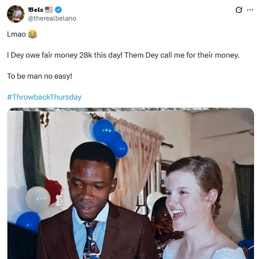 Belano opened up in a recent social media post that he was earning N30,000 monthly salary as a school principal and teacher while dating his American wife.