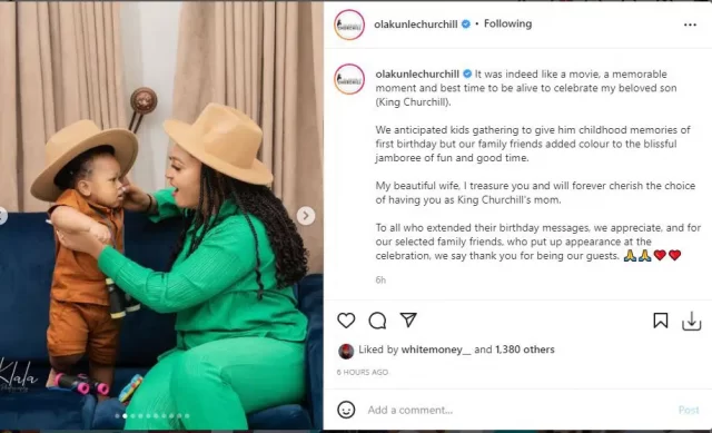 He wrote: It was indeed like a movie, a memorable moment and best time to be alive to celebrate my beloved son (King Churchill).