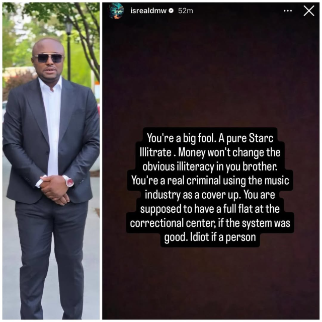 “You’re a big fool. A pure stark illiterate. Money won’t change the obvious illiteracy in you, brother. You’re a real criminal using the music industry as a cover-up. You are supposed to have a full flat at the correctional center if the system was good. Idiot of a person.”