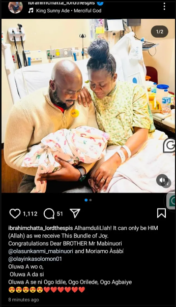 Ibrahim Chatta took to Instagram to share a photos of the new parents writing;