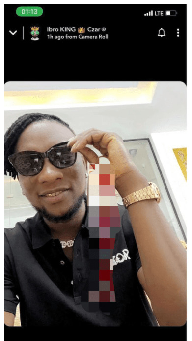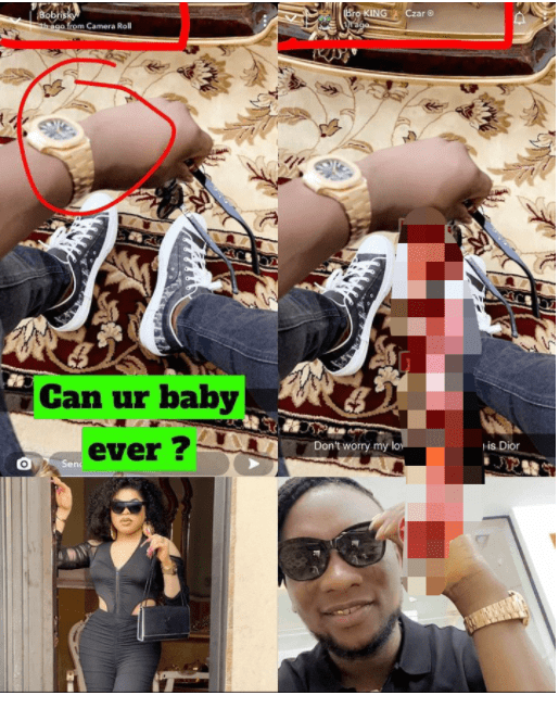 Bobrisky known in private life took to his Snapchat and shared a cryptic photo showing a man’s hands and legs without his face and attached a caption referring to the man as his baby.