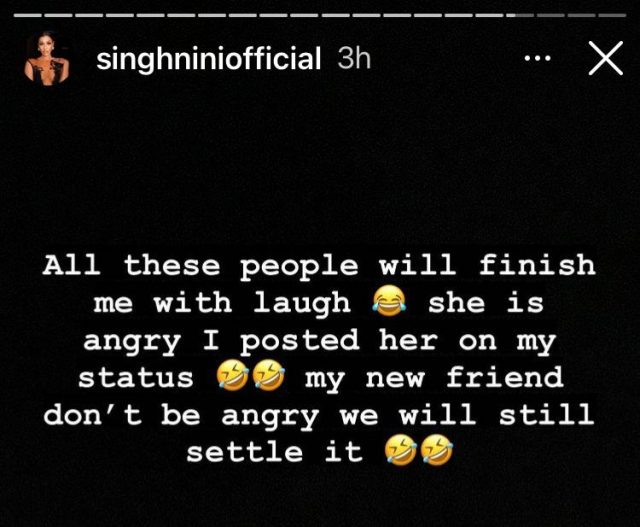 Reality star, Nini Singh faces heavy criticism from a troll who lambasted her for following around fellow ex-housemate, Saga.