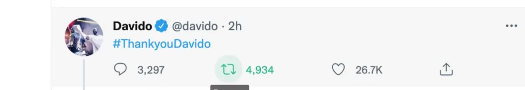 He wrote: “Thank you Davido”