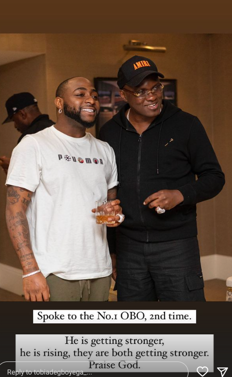 “Spoke to Davido, the No1 OBO, he is getting stronger, they are both getting stronger” Pastor Tobi Adegboyega announced on Instagram moments ago.