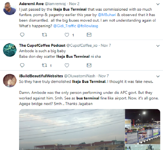 @iamremraj wrote;I just passed by the Ikeja Bus Terminal that was commissioned with so much funfare, pomp & pagentry earlier this year by @MBuhari & observed that it has been dismantled, all the big buses moved out. I am not understanding again o! What’s happening?