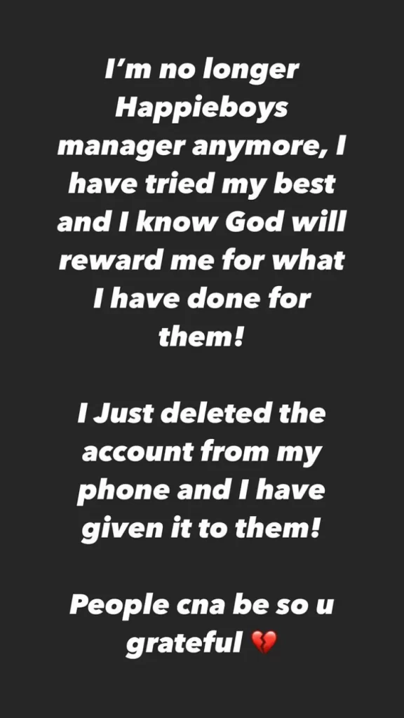 He also took to his Instagram page to release a statement distancing himself from Happie Boys.