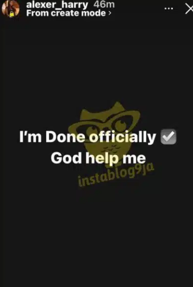 Harrysong’s wife recently announced on her Instagram story that she is officially done while pleading with God for assistance.