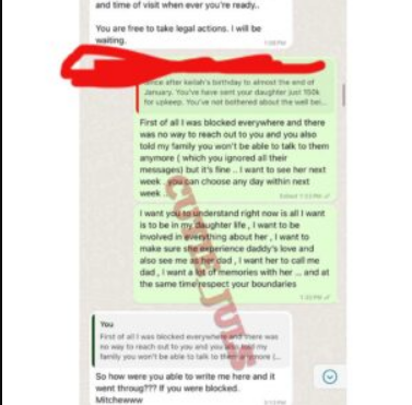 Since after Keilah’s birthday to almost the end of January, you have sent your daughter only 150k for upkeep, you’ve not bothered about the wellbeing of your daughter Keilah. Neither have you asked about her or bothered to check up on her… ……you’re never tired with lies. I’m still surprised you suddenly want to be close to your child, after so much begging from month’s back