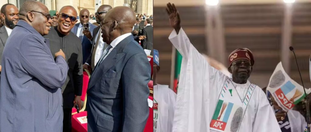 During the installation mass of Pope Leo XIV at the Vatican City on Sunday, President Bola Ahmed Tinubu shared a jovial interaction with Peter Obi, the Labour Party’s 2023 presidential candidate, and Kayode Fayemi, the former governor of Ekiti State.