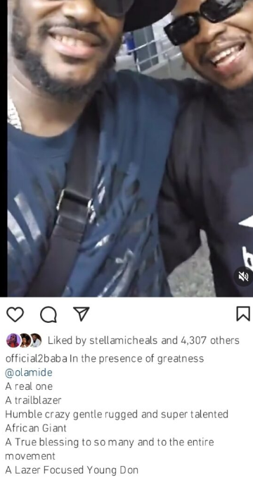 Saluting Olamide, he lauded him for being a genuine individual, a trailblazer, an African Giant who was extremely gifted and humble.