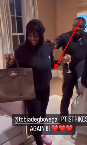 In the clip shared on Davido’s IG story, Pastor Tobi Adegboyega who is a close friend of the crooner gifted Chioma a designer’s bag believed to be worth millions of naira.