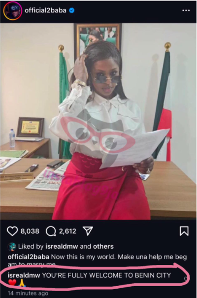 - One standout comment came from Israel DMW, who happily welcomed the singer to Benin City.