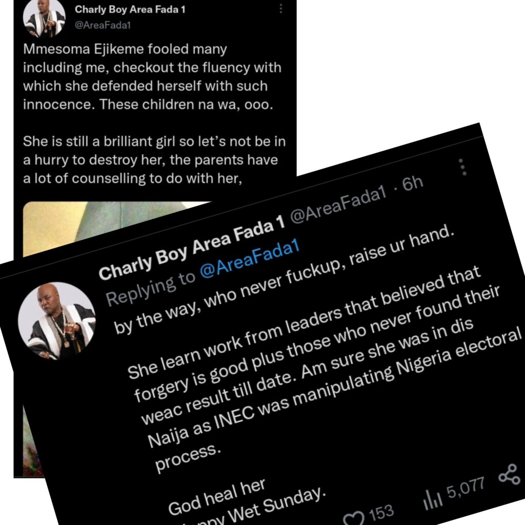 Speaking on the outcome of things, Charly Boy acknowledged that Mmesoma had successfully deceived many people, including himself, with her articulate defence and apparent innocence.