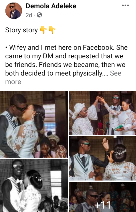 “Wifey and I met here on Facebook. She came to my DM and requested that we be friends. Friends we became, then we both decided to meet physically,” he wrote on Facebook.