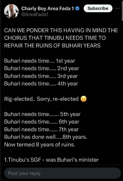 In a post on his X page on Sunday, he highlighted that Tinubu’s cabinet includes numerous individuals who were part of former President Muhammadu Buhari’s administration, which faced significant criticism and was widely regarded as unsuccessful during its eight-year period.