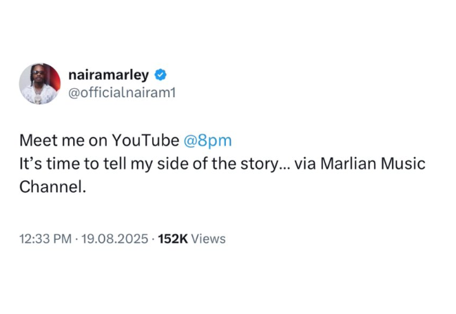 While details of what he plans to share remain unclear, many are speculating that Naira Marley may respond to criticisms, clarify rumors, or provide insight into personal and professional challenges he has faced.